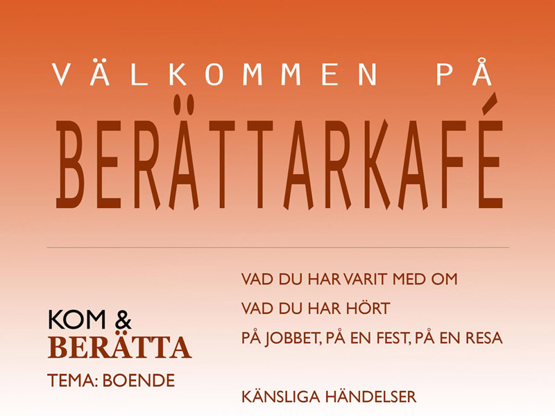 Tyresö Kollektivhusförening anordnade i slutet av november ett så kallat berättarcafé på Kvarnhjulet vid Nyboda skola. Här delges vi små händelser i alldeles vanligt folks liv. Det kom ofta att handla om episoder där djur var inblandade. Det här är den fjärde halvtimmen från detta evenemang