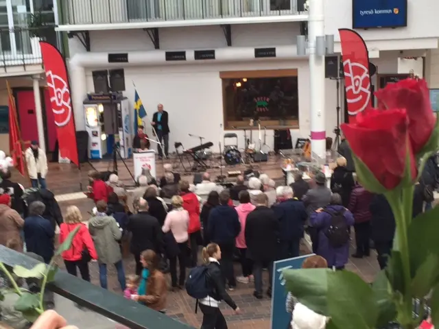 Ett reportage från 1:a maj i Tyresö där Tyresös socialdemokrater demonstrerar. Intervjuer med deltagare i demonstrationståget och korta inslag från talen och rösterna i Tyresö Centrum där riksdagsmannen Mathias Tegnér var huvudtalare. Radio(s)reporter: Ann Sandin-Lindgren