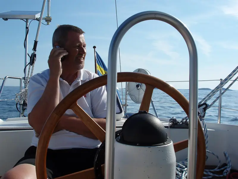 Ann Sandin-Lindgren sitter och pratar med Mats Bejbom som är mycket aktiv i Trollbäckens båtsällskap - TBS - och kan mycket om båtar. De diskuterar båtbottenfärger, medlemskap, vaktgång, sjösättning, kurser, segelskola och mycket annat som berör båtägare. Vad gäller om man går med i en båtklubb?