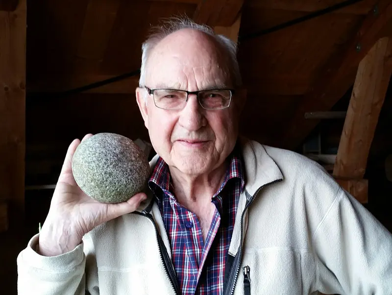 Göran Magnusson visar och berättar inlevelsefullt om intressanta saker, och om föremålens användningsområde och historia, på Uddby Gårds Museum för Gunnel Agrell Lundgren. Göran och hans bror Erik har samlat bortåt 1000 olika föremål som använts på Uddby och intill liggande gårdar eller har förvärvats från annat håll.