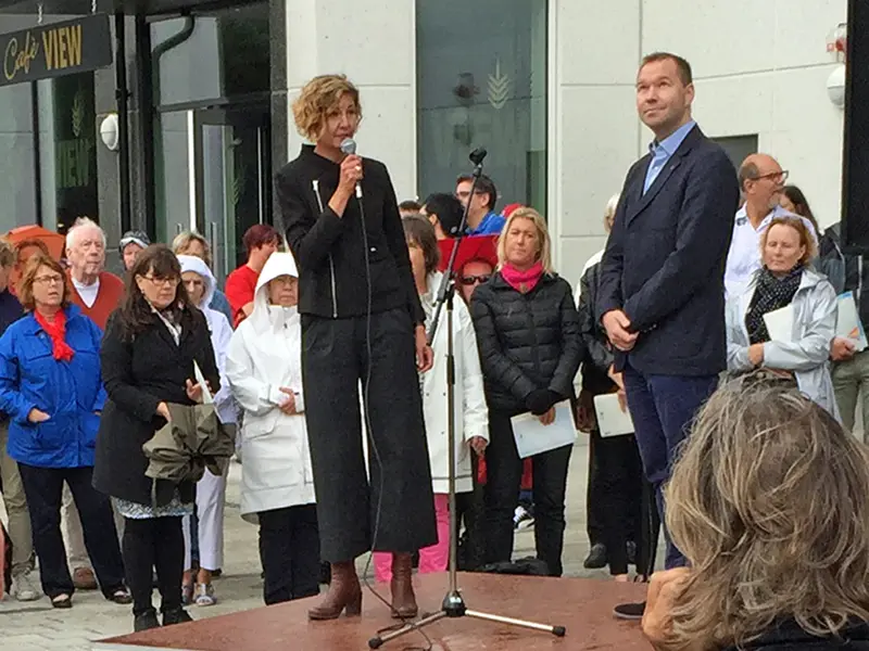 När solen börjat skina över Tyresö igen efter ett häftigt störtregn, inviger kommunstyrelsens ordförande Fredrik Saweståhl Tyresö Stadspark tillsammans med parkens skapare landskapsarkitekten Sara Wikstrand. Som avslutning sjunger Tyresö Vokalis två polskor, vilket skulle symbolisera att man kanske även kommer dansa i den vackra parken. Gunnel Agrell Lundgren spelade in.