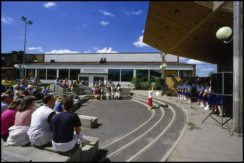 Bilden visar den scen som förut fanns framför biografen Forellen. Fotografen Lars Ternblad berättar om bilden han tog i mitten på 80-talet och hur den användes för underhållning och evenemang.