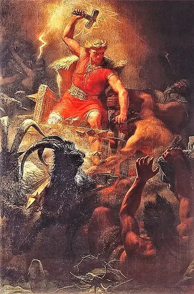 Vikingakvinnan Elvira berättar för barn i Alby om asarnas skapelseberättelse och sagan om När Tor blev bestulen på sin hammare Mjölner. För att få tillbaka den måste han klä ut sig till gudinnan Freja i brudklänning och lova att gifta sig med jätten Ymer. Lyssna så får ni höra hur han fick tillbaka sin hammare. Programmakare Gunnel Agrell Lundgren.