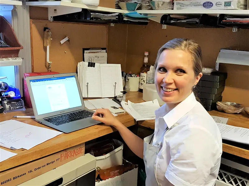 Nina jobbar med beställningar m.m.