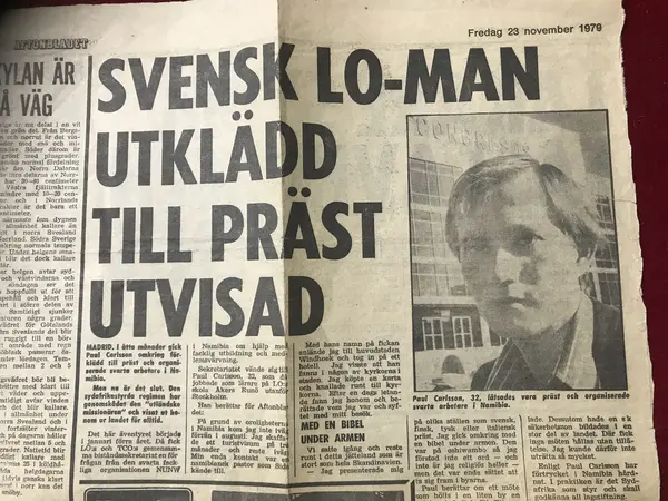 Tyresöbon Palle Carlsson berättar om en fantastisk och spännande tid då han som ung fackföreningsman 1978 fick åka till Namibia i Afrika och starta fackföreningar. Om de svartas villkor, modiga människor han mött och om vad de har lärt honom i livet att inte döma människor efter hudfärg eller grupp.
