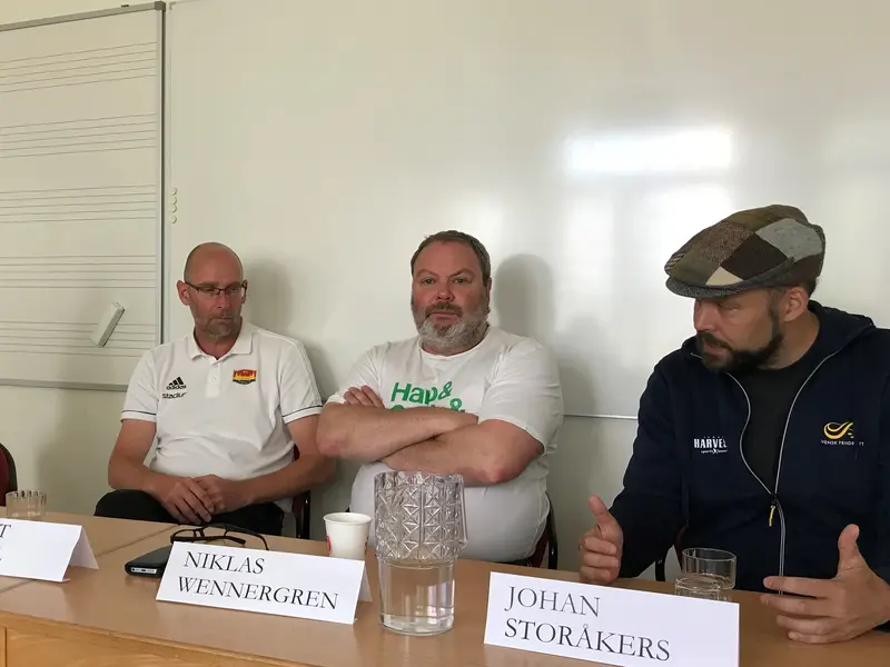 Robert Frinell kanslichef Tyresö FF, Niklas Wennergren (s) sportjournalist, Johan Storåkers (L) orförande för Stockholms Friidrottsförbund