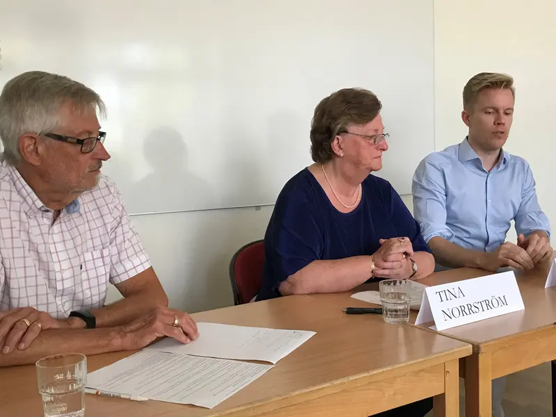 Moderator Kristjan Vaigur, Tina Norrström Hyresgästföreningen Tyresö och Martin Hofverberg chefsekonom Hyresgästföreningen