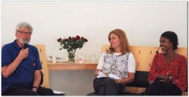 Jerry Svensson, Anna Sundström från PalmeCentret och Nasra Ali ordförande i S-studenter