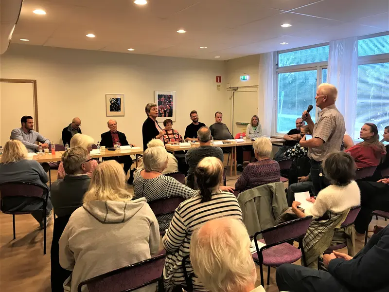 Med anledning av valet i höst, bjöd Hyresgästföreningen Tyresö in alla de partier som är representerade i kommunfullmäktige till ett bostadspolitiskt samtal om boendet i Tyresö. Politikerna fick frågor om hur de ställer sig till marknadshyror och nuvarande hyressättningssystem. Alla partier utom M var närvarande.
