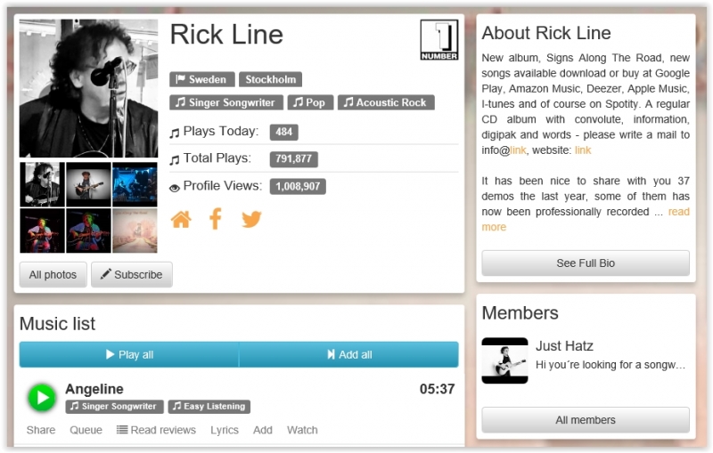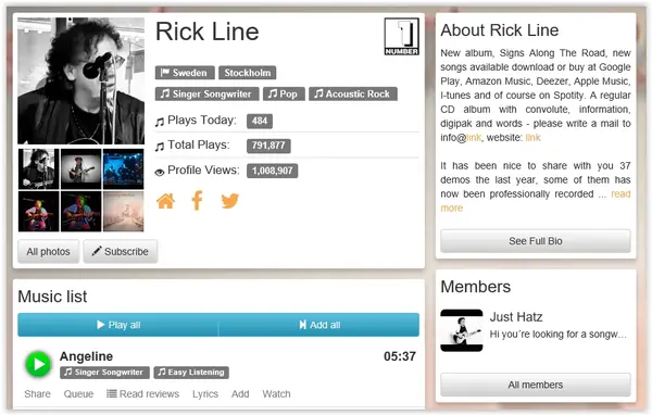 Här kan man se hur många som lyssnat på Rick på https://www.numberonemusic.com/rickline
