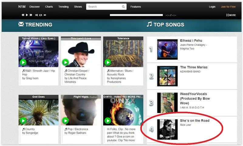 På Veckans Top Songs på Number One Music har Rick legat etta. I mitten av februari låg han fortfarande fyra i världen.