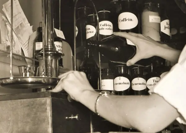 Gunnel väger upp ingredienserna till en hostmedicin kanske eller en magmixtur.