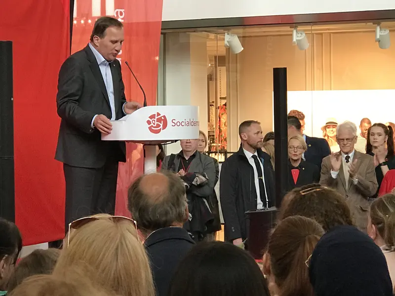 Programmakare Lena Hjelmérus bevakar ett plötsligt celebert besök i Tyresö Centrum EU valdagen. Stefan Löfven kommer till slut och håller ett tal som ni kan lyssna på här. Lena får till slut ställa en fråga och svaret är det behövs ett solidariskt samhälle.