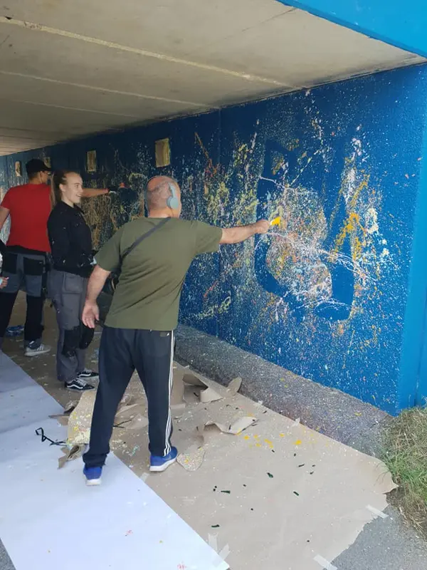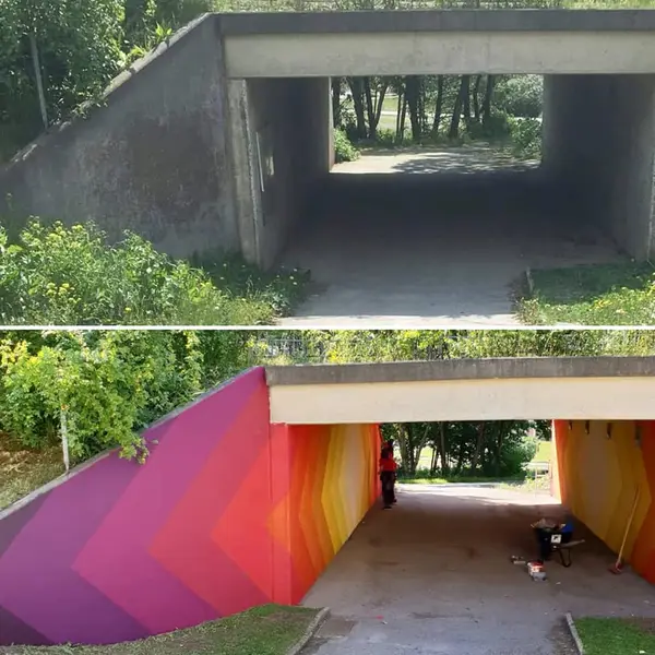 Före och efter ommålning av gångtunnel