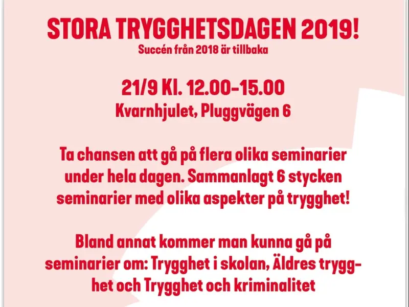 Succén från förra året är tillbaka! Ta chansen att gå på sammanlagt 6 olika seminarier, bland annat Trygghet i skolan, Äldres trygghet och Trygghet och kriminalitet!