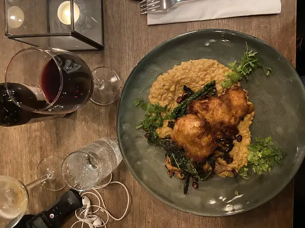 Ann tog Butter fried chicken på lårfilé med creamy smokey corn och smörstekta kantareller, svartkål och svarta bönor