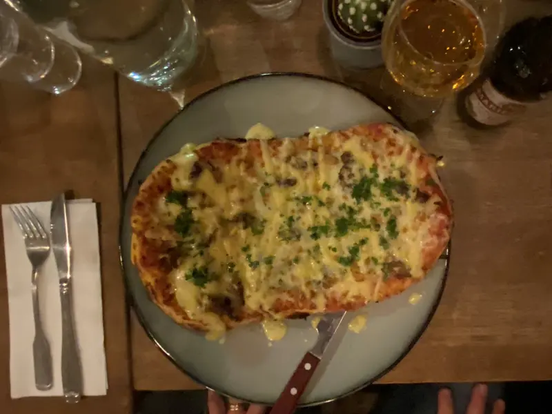 Björn tog pizzan Memphis 2.0 med Oxfilé, vitlöksfräst svartrot, Västerbottenost, bearnaisesås och persilja