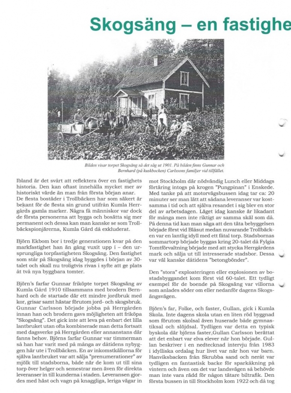 Bernts kusin Björn Ekbom född 1940 berättar i Tyresö Tidning om torpet Skogsäng.