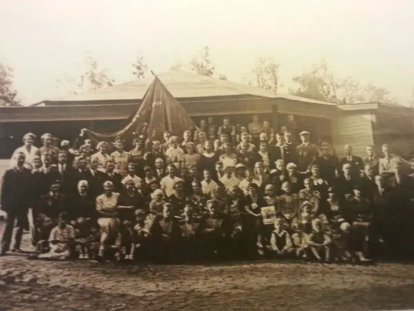 Uppställda framför dansbanan är dåtidens socialdemokrater.