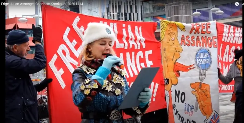 Konstnären Charlotte Krook från Tyresö berättar om hur den aktuelle journalisten Julian Assange har behandlats i Sverige och i London. Varför frisläpps han inte? Ann Sandin-Lindgren ställer frågor om varför krigsförbrytelserna inte uppmärksammas mer. Varför bryr vi oss inte mer om yttrandefriheten?