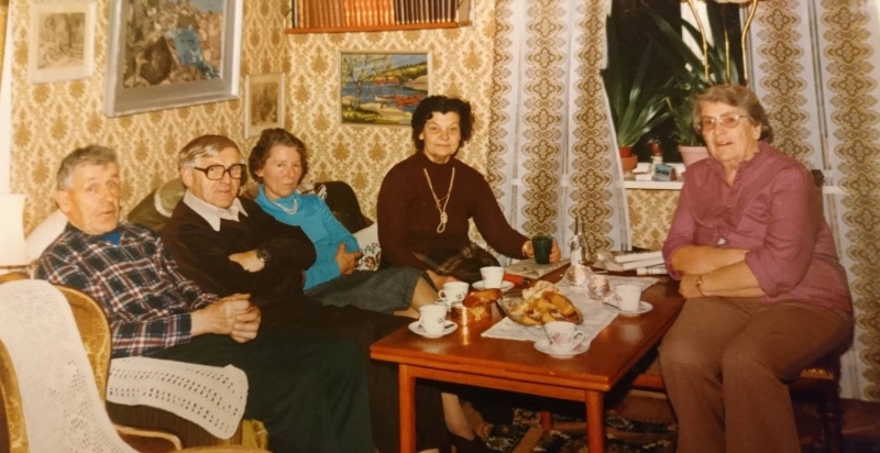 Hennes man Evert tvåa från höger. Sonen Bengt längst ner till höger!. Bernt Karlsson sitter bredvid Bengt.