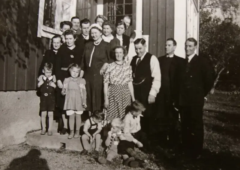 På Skogsängs torp 1945 när Bernt Karlssons farfar Gunnar Karlsson (1885-1979) fyller 60 år.