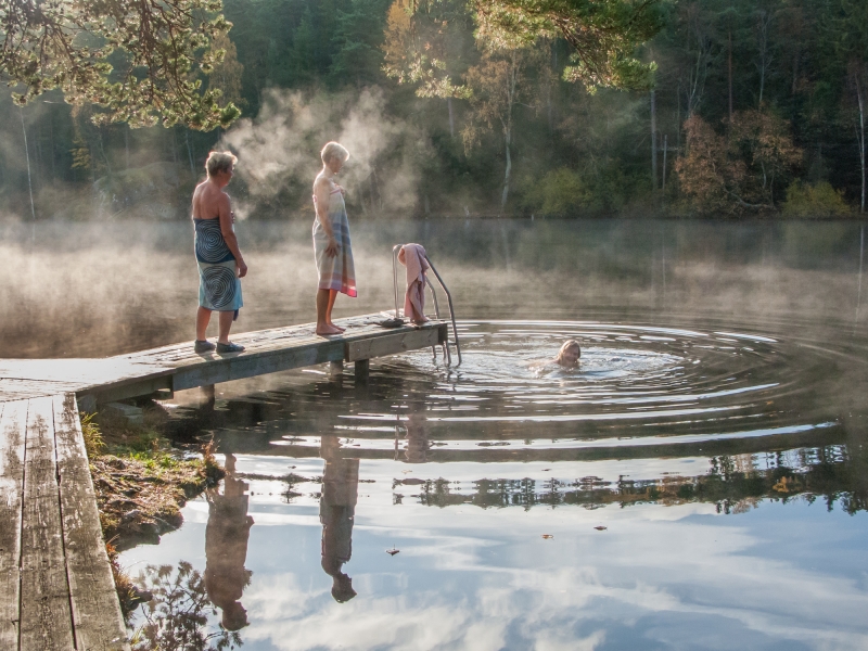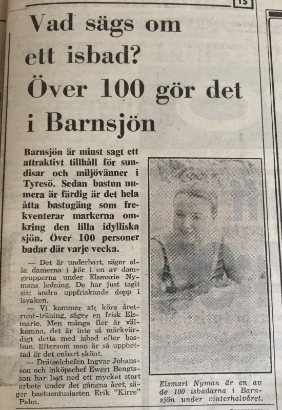 Vid Barnsjön är det flera Tyresöbor som badar året runt. Ritva, Solveig, Gurli och Barbro är ett gäng "tanter" som även vinterbadar och de berättar för Ann Sandin-Lindgren om denna härliga gemenskap. Kenneth från Tyresö kommun kom också förbi och informerade om hur man sköter badplatserna i kommunen.