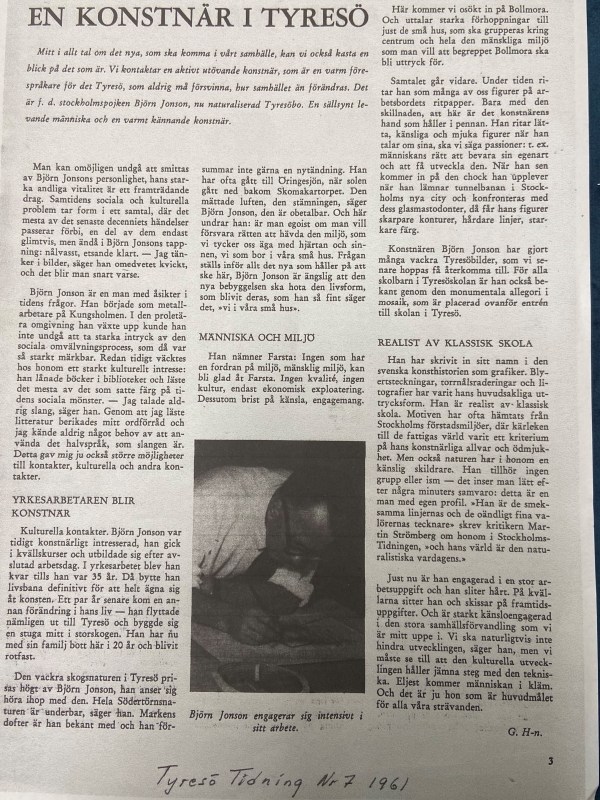 Den gömda mosaikväggen som skapades av Tyresökonstnären Björn Jonson i LM Ericssons gamla entré håller nu på att komma fram. Bernt Karlsson ger bakgrunden till mosaikväggen. Bernt och Ann Sandin-Lindgren ringer upp Björn Jonsons dotter Eldrid Ramberg som berättar om sin far, hans livsverk och livet i Öringe på 40-talet.