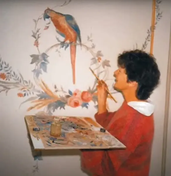 Bild från filmen där Ulla-Carina Sellergren målar väggarna