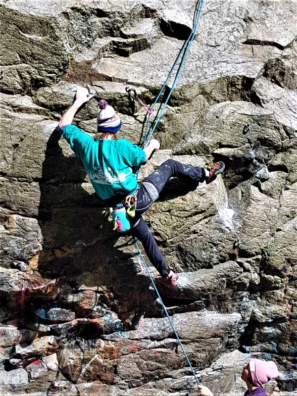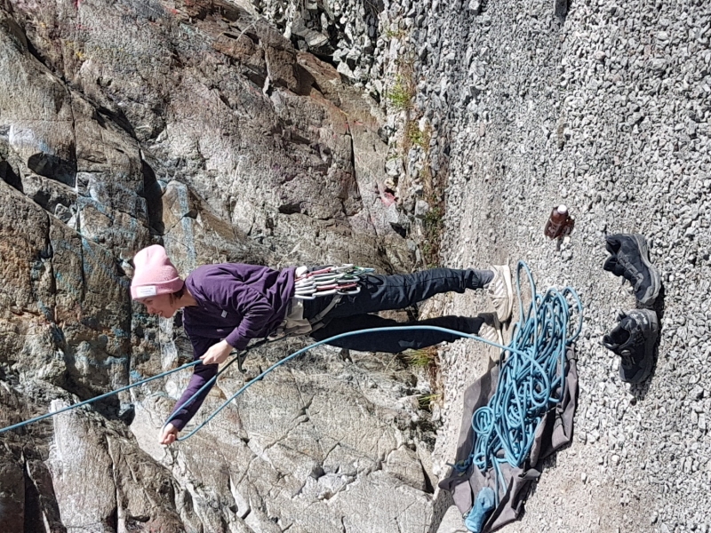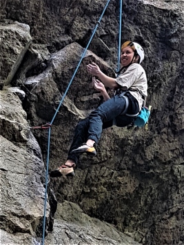 "Håll vänsterfoten mitt i överhänget, det finns ett litet flarn någonstans, och högerfoten på läppen, där det kan vara lite svart." Så kan det låta när bergsklättrare ger instruktioner. Möt Gustav, Frida, Adam och Lotta när dom svävar mellan himmel och jord. Lilla Lotten var också med - men fick nöja sig med vagnen. Frågvisa Gunnel Agrell Lundgren ojade sig mest men fick också svar på sina frågor.