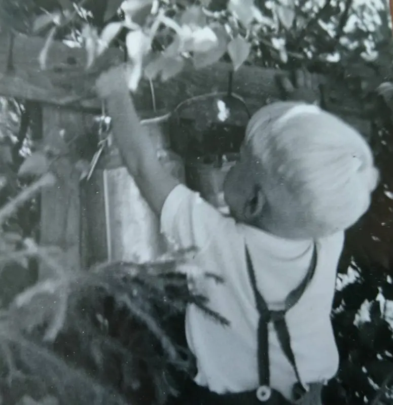 Yngve Johansson 3 år född 1946 vid Skogsängsvägen /Trollbäcksvägen vid "Sågbacken". Där var ett ställ där man hängde upp mjölkflaskor tomma och fick hämta fulla