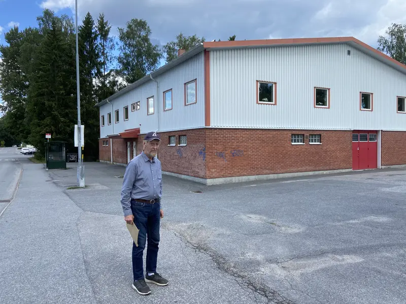 Hasse Gynges garage och festvåning som byggdes på senare år. Bakom syns Carl Gynges hus bakom träden. Den hyrs numera ut som festvåning.