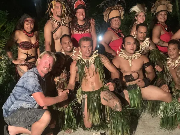 Jonas med de lokala dansarna i Marquesas, Franska Polynesien.