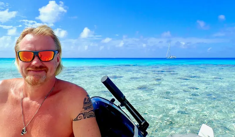 Jonas på atollen Fakarava, Franska Polynesien.