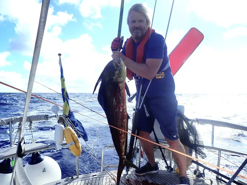 Fisk fångad över Atlanten, vår största Mahi-Mahi (guldmakrill)