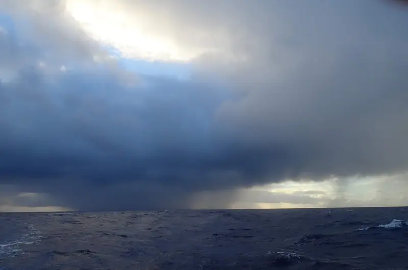 Squalls i sikte, ger tillfälligt mycket vind och regn, väderfenomen på sydliga breddgrader