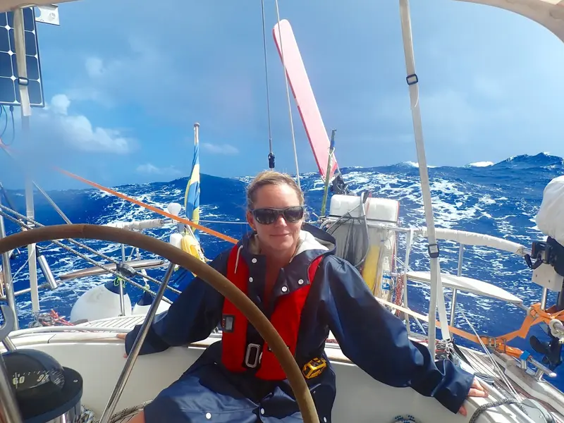 Här har vi en squallen som kommer akterifrån, Madde vaktar vid rodret