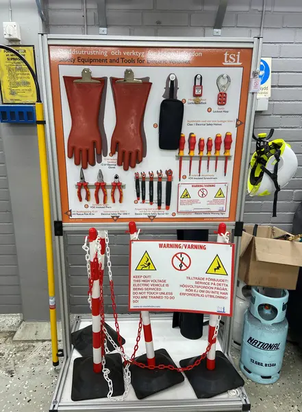 Viktigt med skyddsutrustning när man jobbar med elbilar