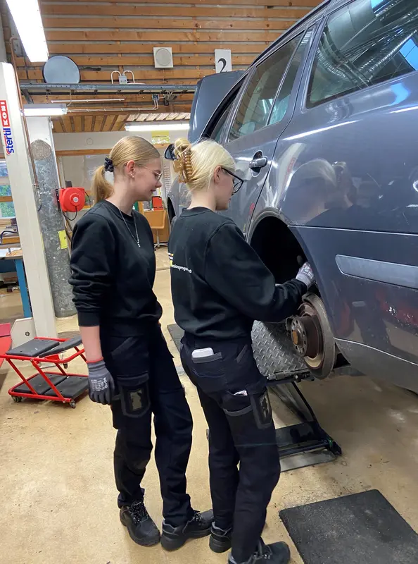 Malin och Leontine lär sig att serva en Skoda