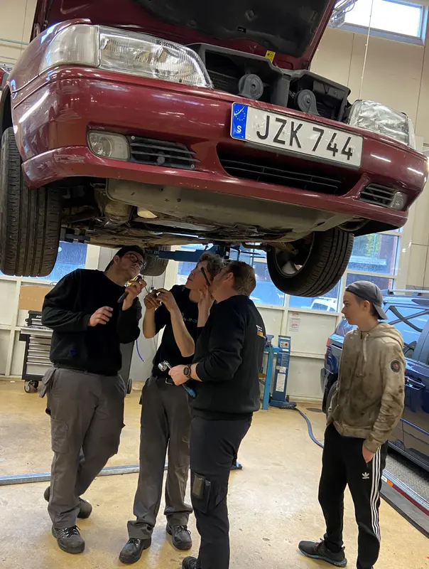 Fordonsläraren Oscar Eriksson visar runt och berättar hur Fordonsprogrammet på Tyresö Gymnasium fungerar. Om hur eleverna för lära sig allt från att skruva ihop bilar, svetsa, koppla el till att laga även moderna elbilar. Flera elever från årskurs 2 berättar hur bra de trivs både på skolan och med sin utbildning.