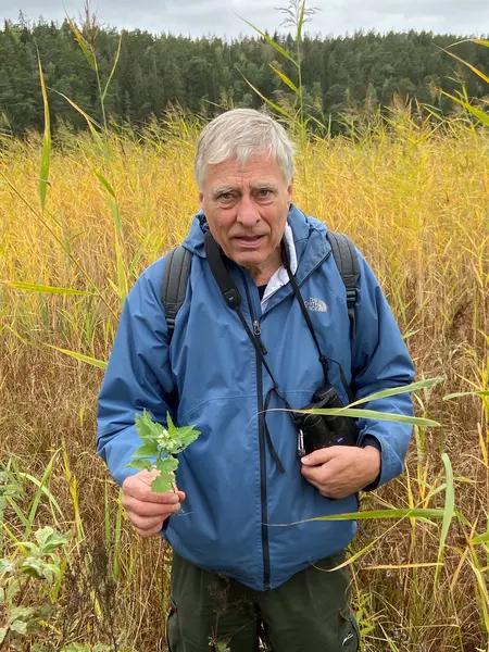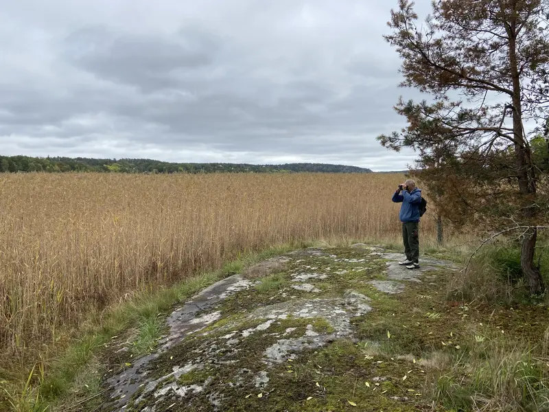 Anders letar efter ormtunga bland vassen vid Notholmen