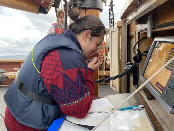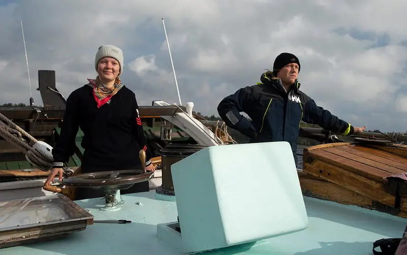 Nora får vara rorsman under överinseende av styrman Andreas Jansson.