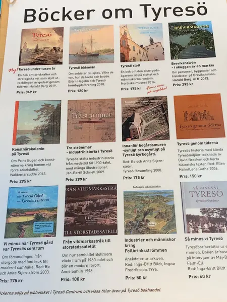 På Tyresö bibliotek kan man också köpa böcker. Här är prislistan.
