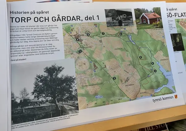 På biblioteket kan man hämta kartor och vandra i Tyresös historia bland torp och gårdar.