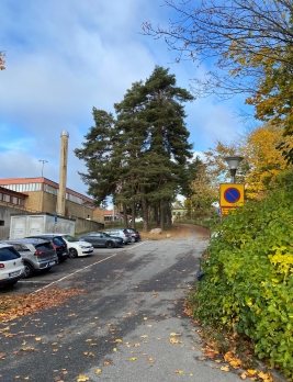 Man ser gaveln på det gamla ålderdomshemmet till vänster.