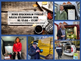 Varannan måndag kl 17-17.30 så samlas lokala matproducenter på stora parkeringen nedanför ICA i Tyresö Centrum och erbjuder sina varor. Rekoringen är en möjlighet för alla att beställa närproducerad mat direkt av producenterna via FB-gruppen Reko Tyresö. Här finns allt från grönsaker, sylt, kaffe, svamp till kött, korv och pastejer.