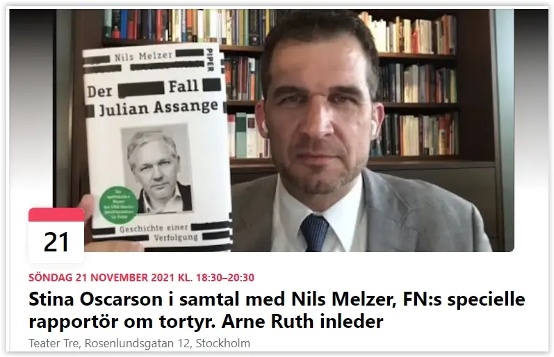 Unikt tillfälle att höra Nils Melzer, vars bok "Fallet Julian Assange" i dagarna kommit ut på svenska.