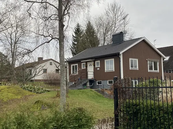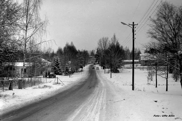Södergårdstorpet låg tidigare här. I det blå huset i bakgrunden bodde åkeriägaren Sebert Magnusson.