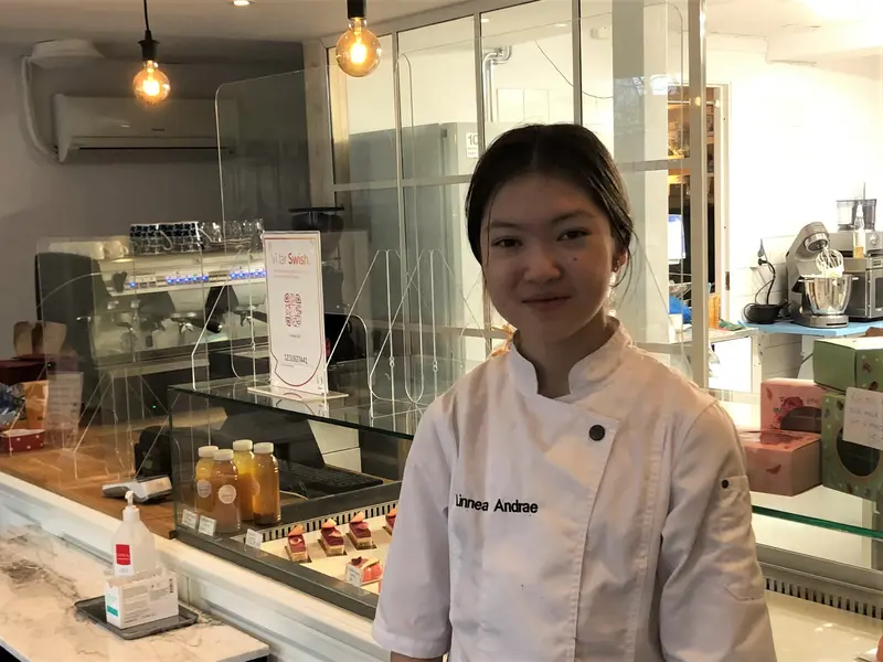 Linnea Andrae vann Hela Sverige bakar Junior 2015 när hon var 13 år gammal. Nu har hon öppnat café, bageri och patisserie vid Strandtorget i Tyresö. Här bjuder hon på allt från läckra bakelser, fantastiska tårtor, semlor och lättare luncher. Lyssna till en ung entreprenör som brinner för sitt yrke! Catarina Johansson Nyman provsmakade, njöt och samtalade med Linnea.