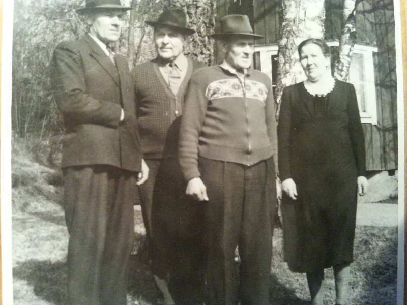 Här är syskonskaran nån gång på 1970-talet utanför Gunnars hus. Från vänster Elis, Gunnar, Bernhard och Engla. (Brodern Viktor dog tidigt)